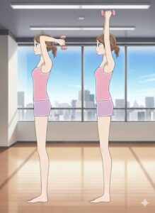- 両手を上に上げる:2キロ程度のペットボトルがあればよいがなくてもOK