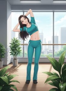 - ねじりプラス:そのまま左後ろに軽くねじると、さらに気持ちよく伸びます。